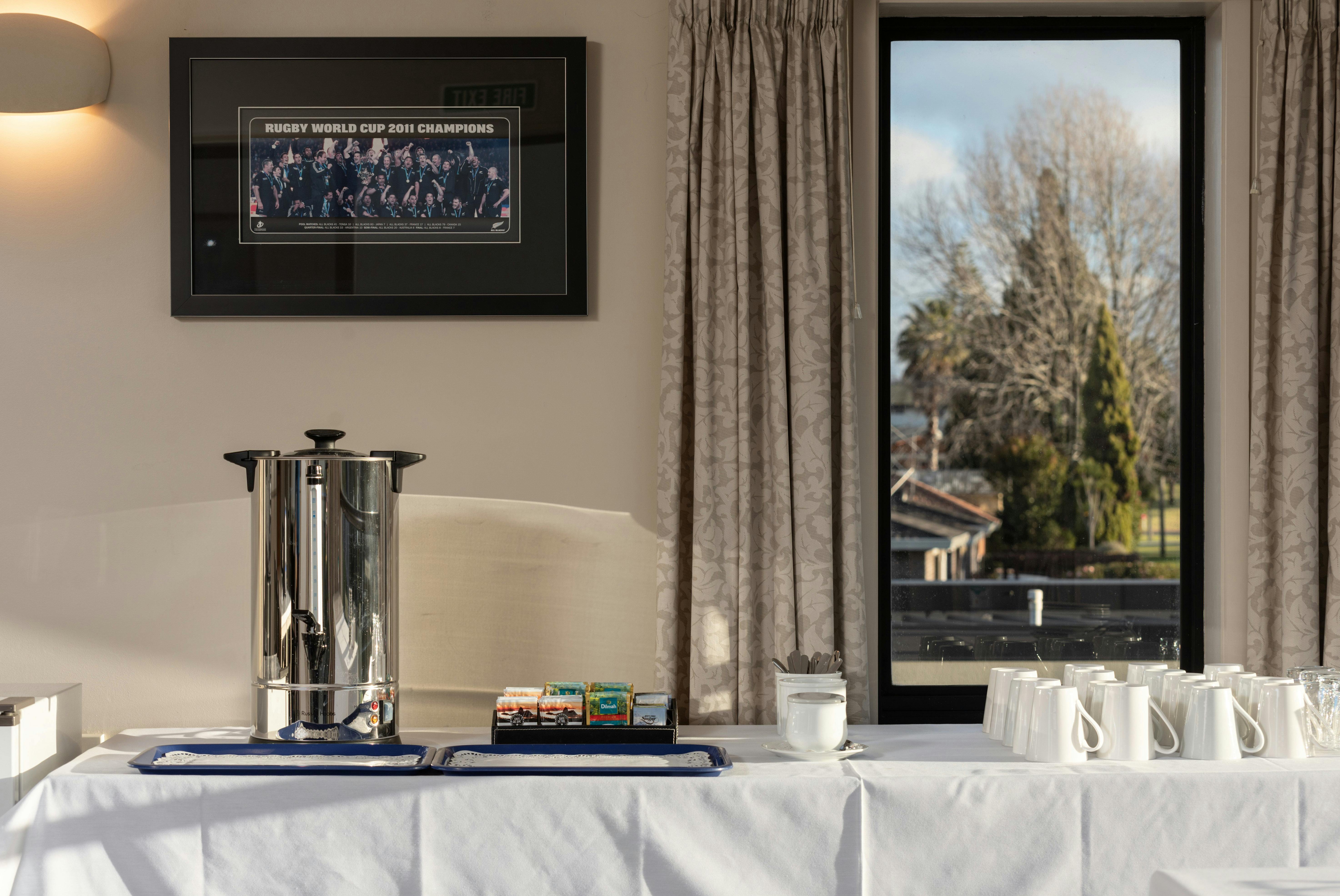 A separate ground-floor entrance with access from the motel driveway. There is an additional sliding door which opens onto a small covered patio on the pool terrace, There is a wheelchair access ramp and the toilet facilities are also designed for wheelchair access. Well appointed Ladies and Gents Rest rooms. Tea and coffee is available as well as any catering that is needed.