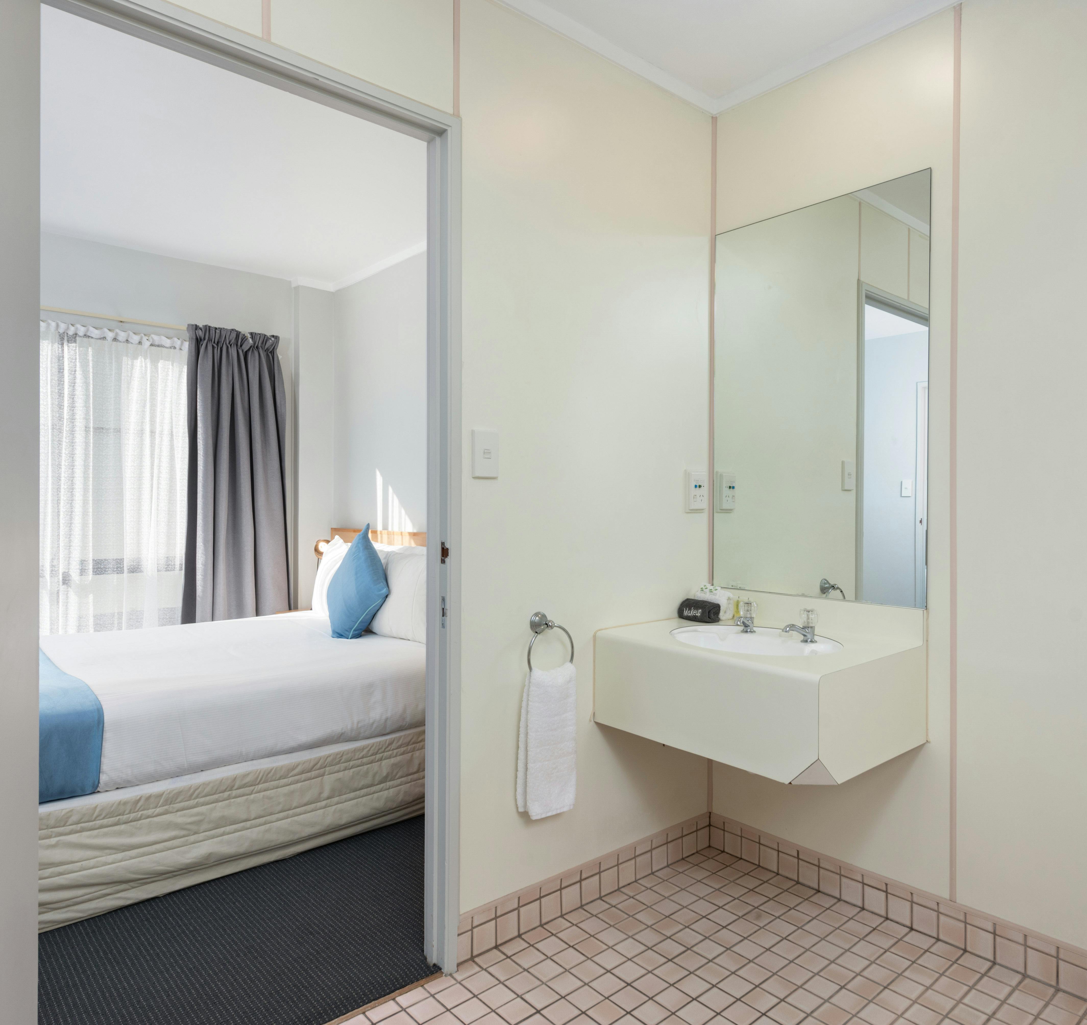 These comfortable units have a queen-size bed in the bedroom, and an en-suite bathroom with a vanity and basin, single spa bath, shower, and toilet. The beds have bedside tables and bedside lamps for any late-night readers.